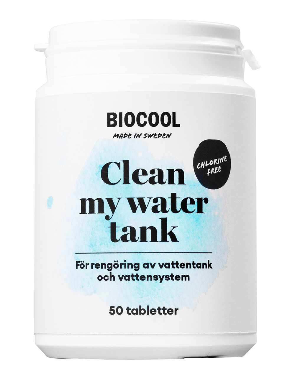 Clean my water tank er miljøvenligt og biologisk nedbrydeligt. Fri for klor og sølv, nemt og sikkert at bruge.