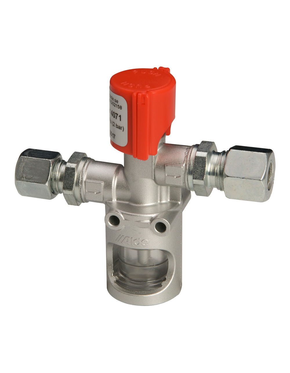 Monteret med tilslutning for 8 mm. rør på indgangen