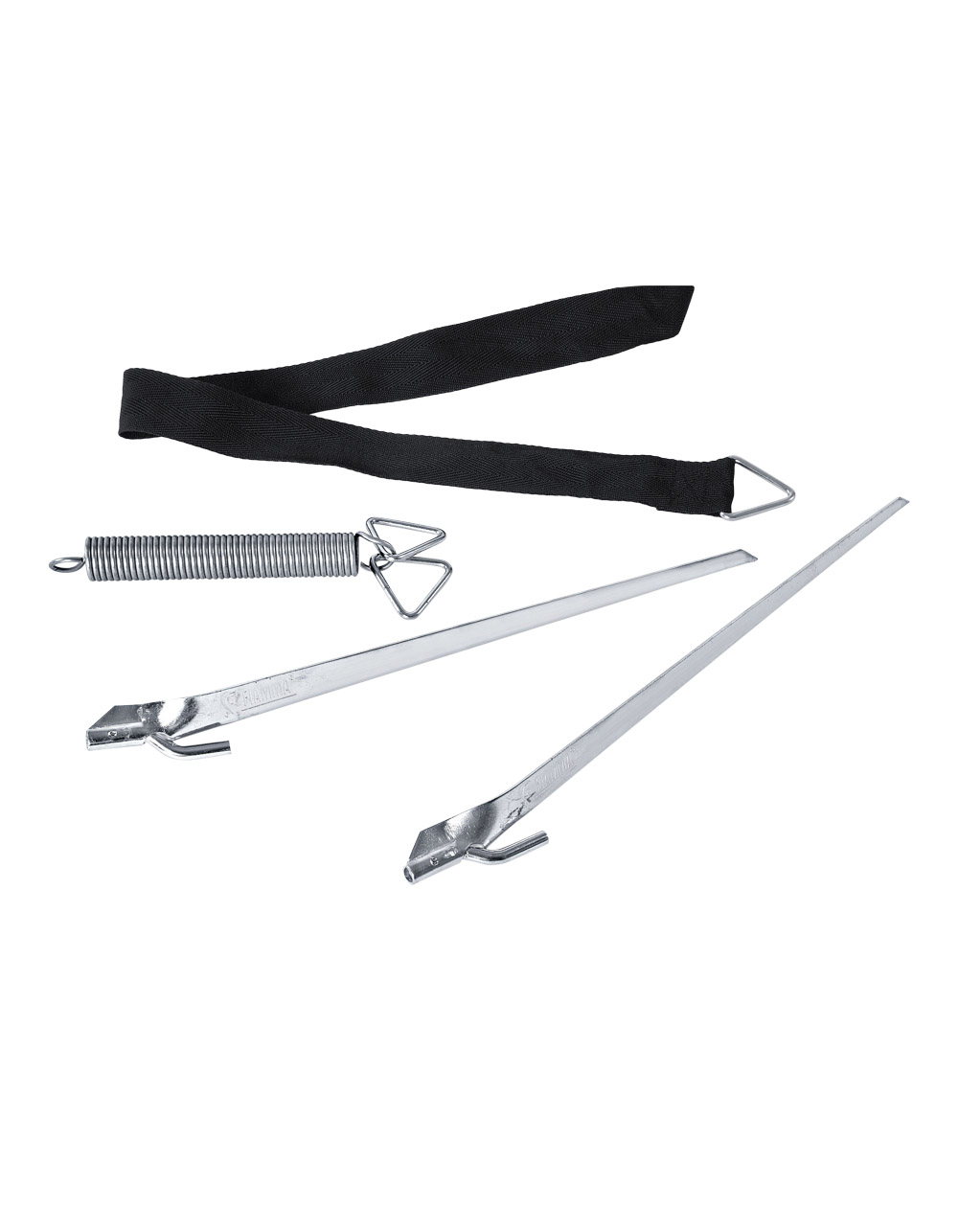 2x 300 cm. justerbare bånd, 2 pløkke og 2 fejdre