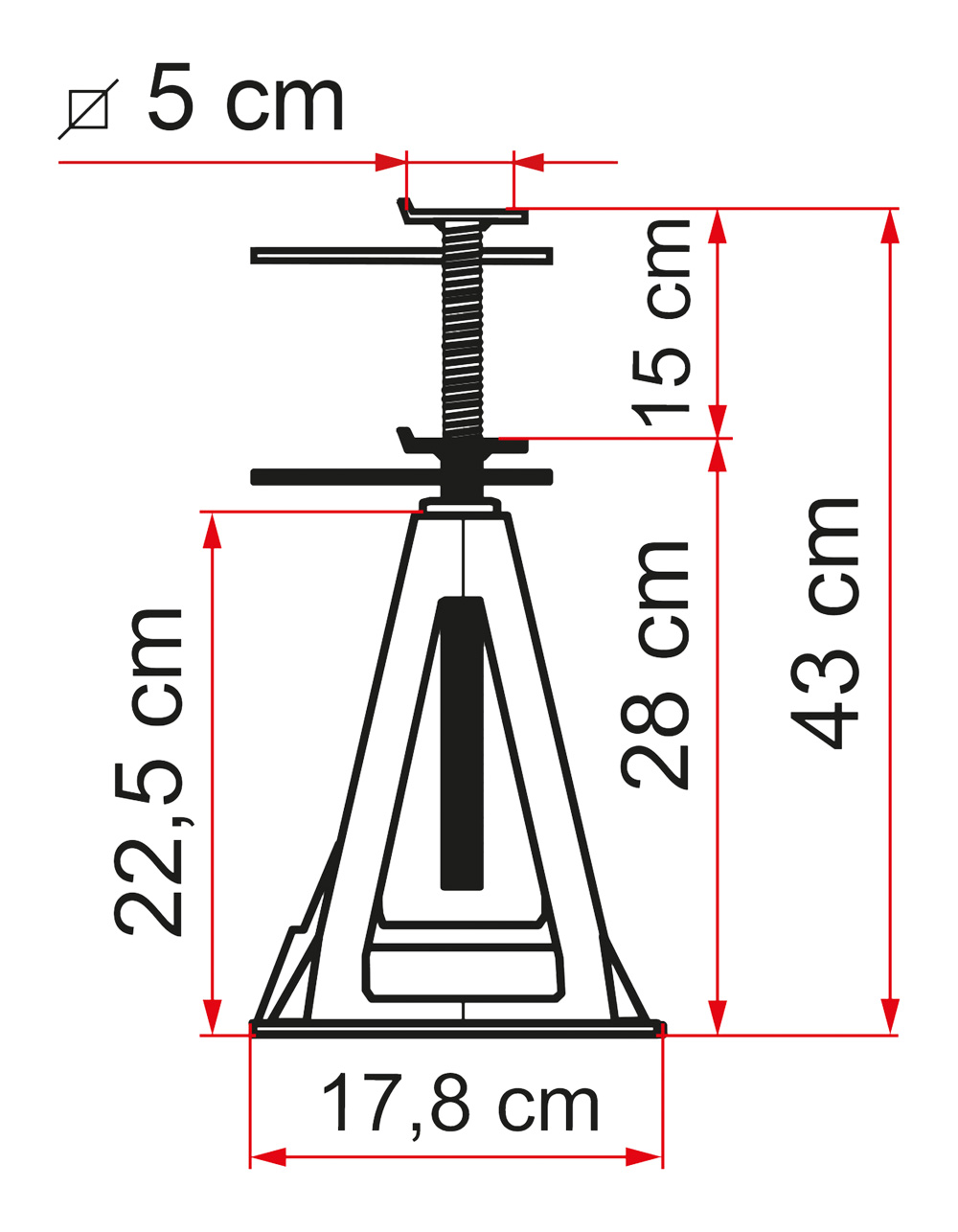 Justerbar højde fra 28 til 43 cm